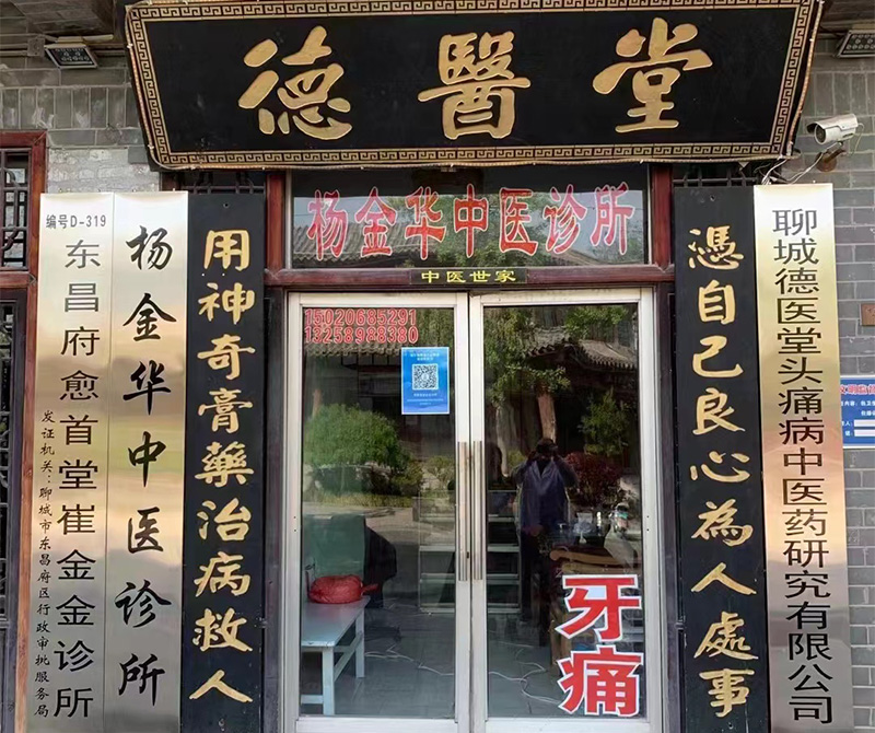 聊城市顽固性头痛病研究所旗下的德医堂,主要从事各类病因引发的颈肩腰腿痛的研究与治疗,如颈椎病、肩周炎、网球肘、腰肌劳损、腰椎间盘突出症、坐骨神经痛、肌肉关节损伤疼痛等各类病因引发的颈肩腰腿痛。现任负责人钟建国乃“头痛病克星”杨金华专家之长子,自幼受中医家族性医学熏陶,熬制传统黑膏药四十余年,在祖传黑膏药的基础上更有新的突破,研制一套内病外治的特效膏药,并获得了国家专利,各大知名报刊均有报道,极赋盛名,被称为“膏药王”。其子钟亚奎,医学硕士,毕业于泰山医学院,结合现代微创技术及针刀治疗技术,从事各类疼痛病的研究与治疗,获得国家专利项目。其女钟亚彬,山东中医药大学毕业研究生,北京海军总医院专家,尤其擅长微创针刀治疗,定期到聊城德医堂坐诊。德医堂在传统中医祖传秘方的基础上,结合现代先进微创治疗及康复手法治疗手段,辅用针灸理疗,推拿按摩及贴敷等各种医学技术手段,其苦心研制的传统黑膏药贴敷后可达到立竿见影之奇效,治愈颈肩腰腿痛患者无数,在当地极赋盛名。